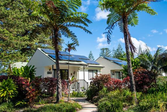 Proudly Norfolk Island’s first and only environmentally sustainable hotel, Governor’s Lodge is the ideal accommodation option for guests wishing to minimise their carbon footprint. Not only does our solar power system generate a significant 52Kw of renewable electricity which feeds excess back into the island’s grid, but our on-site pure rainwater filtration system has an impressive 2 million litre storage capacity. Both of these features, paired with using only the freshest locally grown or caught produce in our dining centres, provide the perfect mix of sustainability and all modern comforts so you can holiday with a lighter footprint.